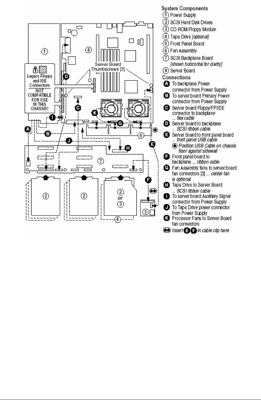 4. Route the auxiliary signal cable (I) from the power supply to the server board and