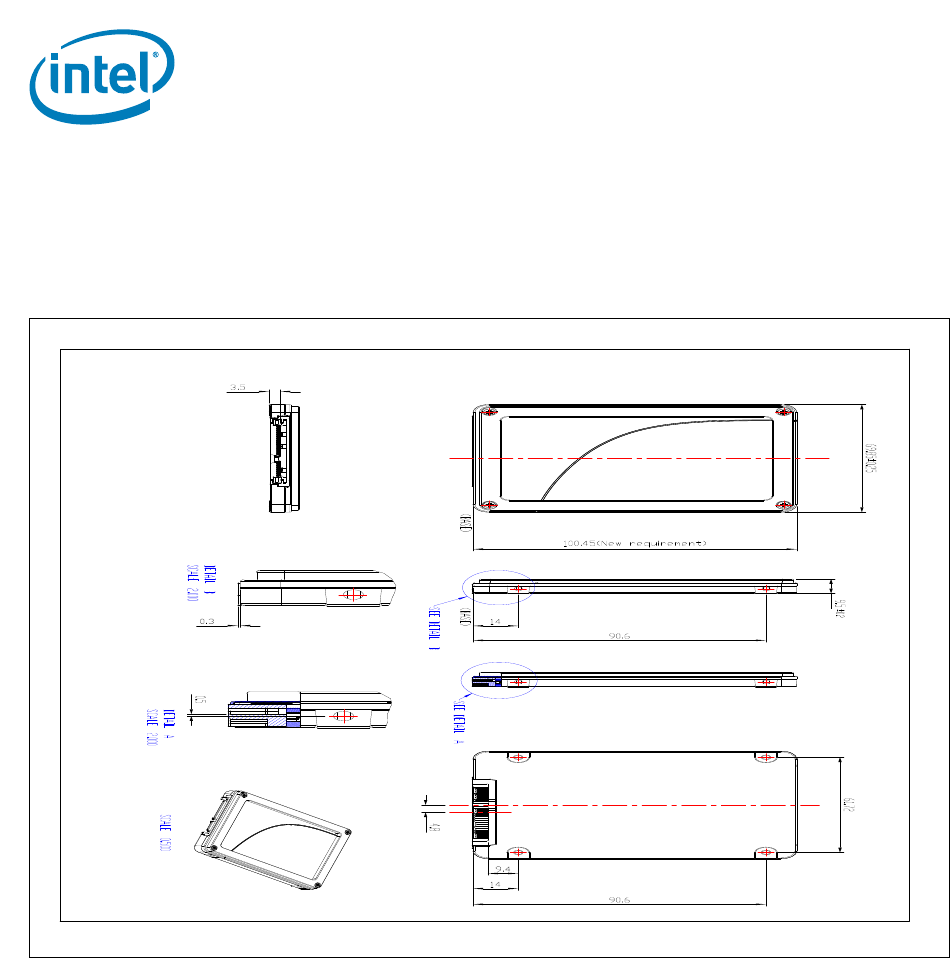 Figure 4. Dimensions for Intel X25-M SATA SSD 2.5” 9.5 mm Form Factor