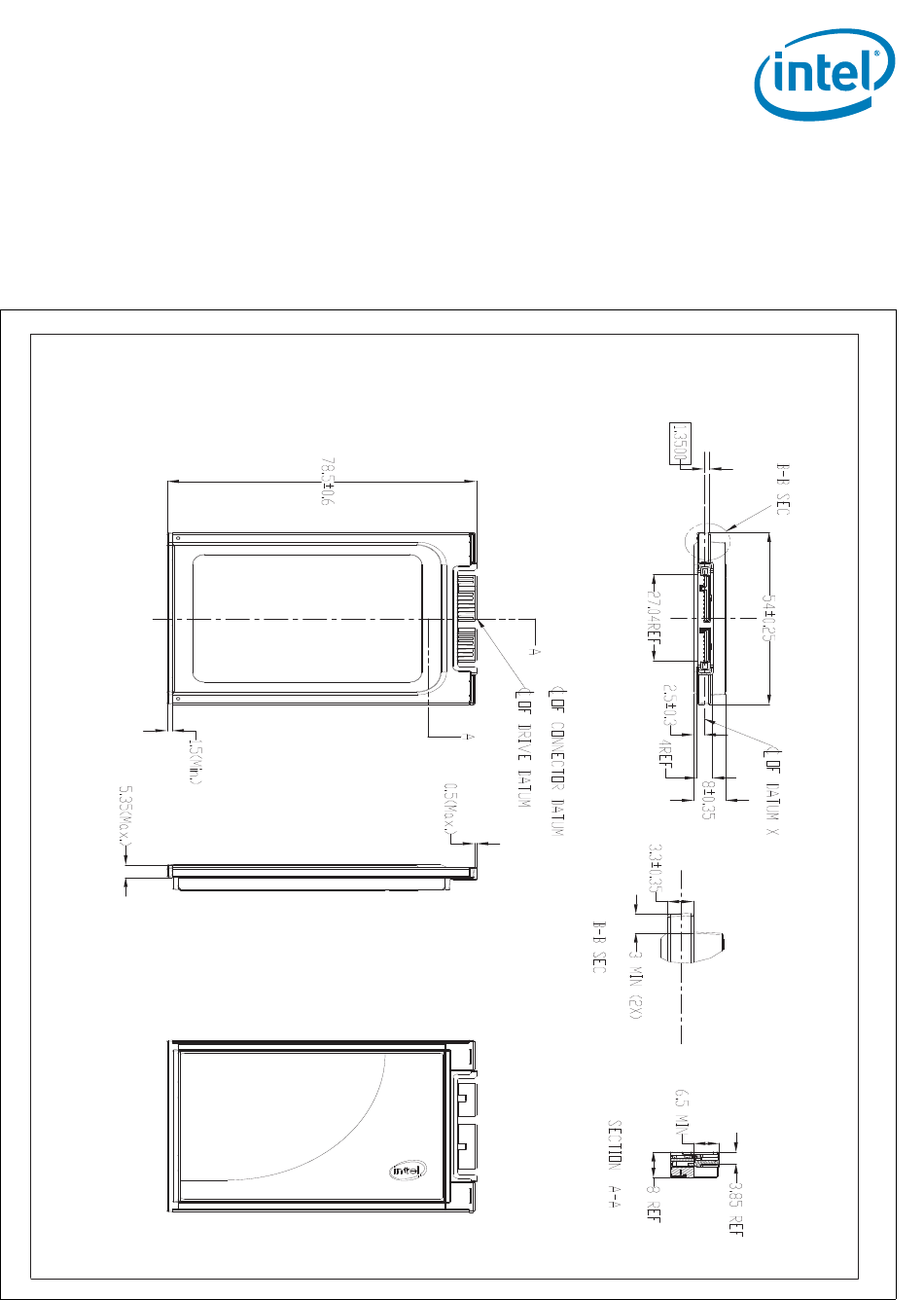 Figure 3. Dimensions for Intel X18-M SATA SSD 1.8” 8 mm Form Factor