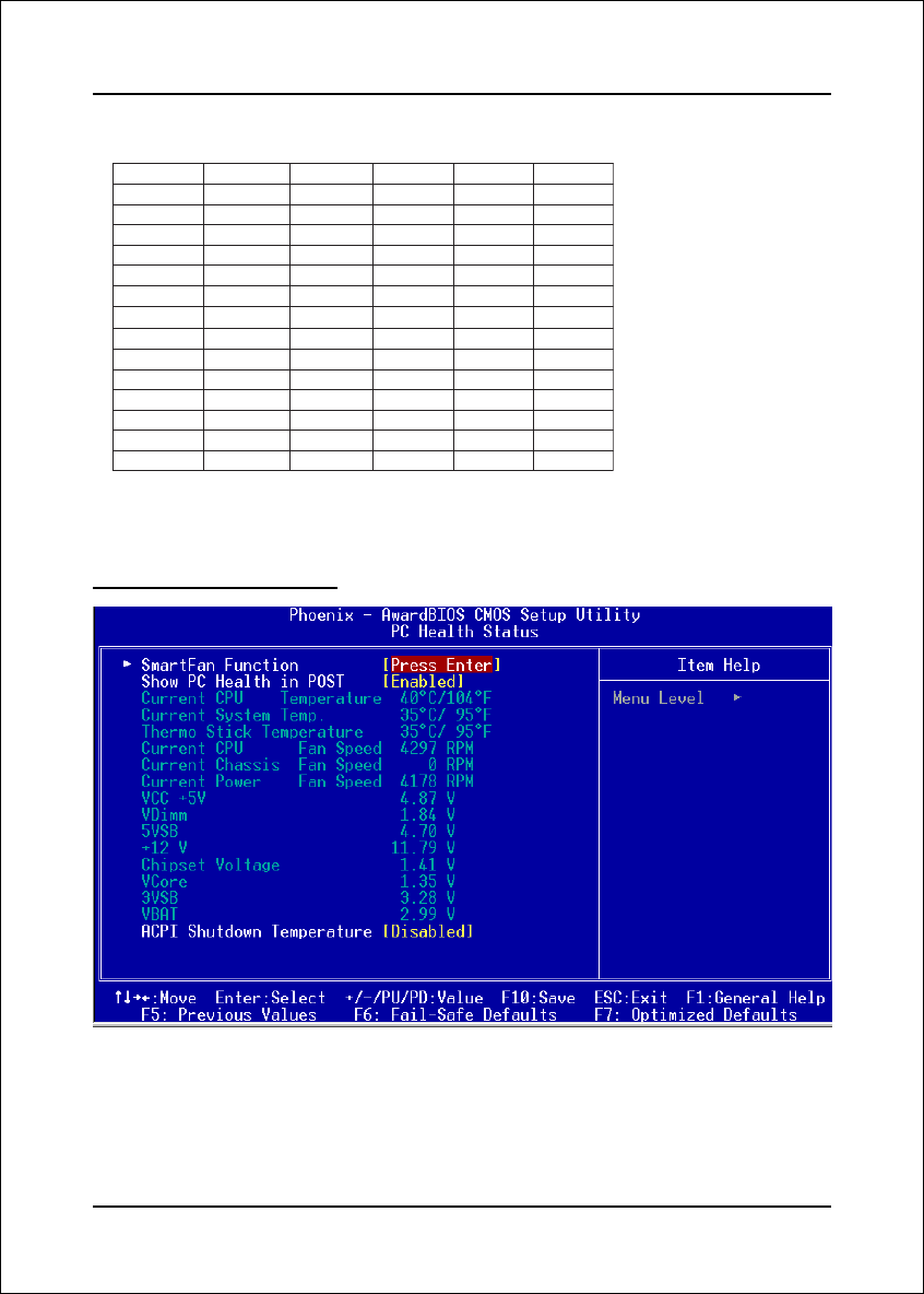 When this function is enabled the PC Health information is displayed during the